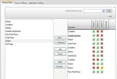 Create sample, single-column or complex, multi-column methods using the same intuitive method editor. Method programming steps include: condition, sample introduction, wash, wait/soak, dilution, mix, N2 purge and wash.